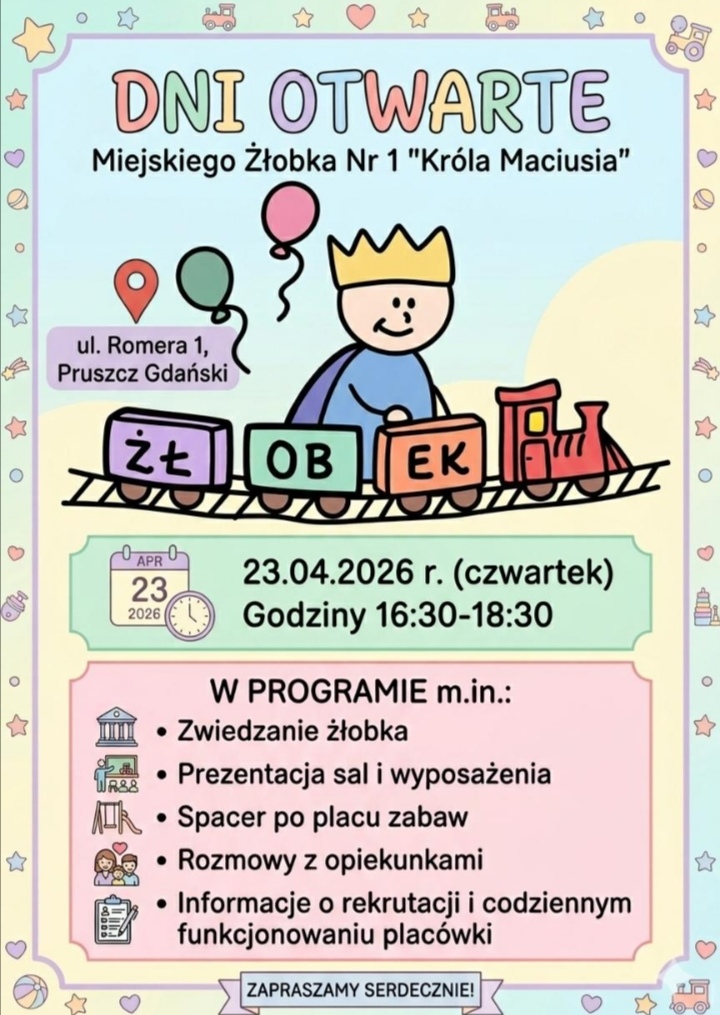 aktualnosci, Aktualności główna, Ogólne, ul. Romera, ul. Żwirki DZIEŃ OTWARTY W ŻŁOBKU Napisał Król Maciuś dodano w dniu 10 kwietnia, 2026 o godzinie 12:52 Kategoria aktualnosci, Aktualności główna, Ogólne, ul. Romera, ul. Żwirki